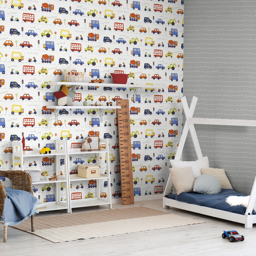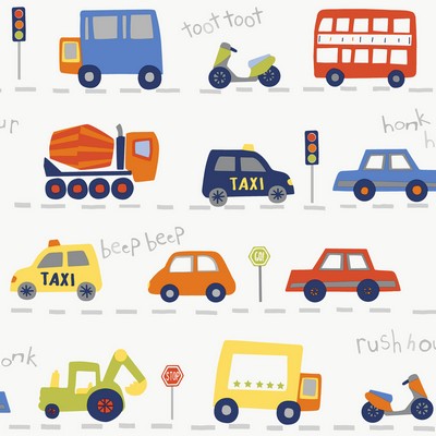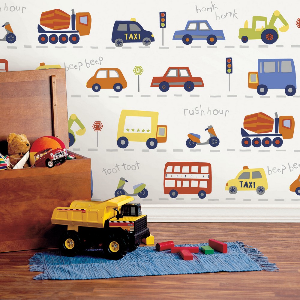 | Advantage World of Imagination Road Traffic Red Cars Wallpaper Match: Drop Repeat: 20.9 Washable Roll is 20.5 Inches in width and 33 Feet in Length With About 56.4 square feet Coverage Unpasted Strippable Paste the Wall Colors: Multicolor Kids Transportation Transportation |