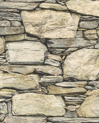 Cobble Neutral Stone Wall Wallpaper
