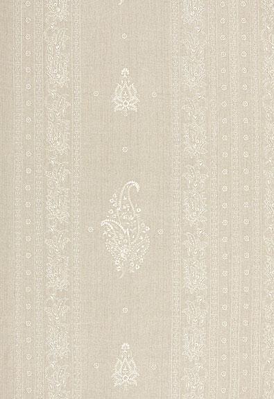Inspired by an antique silk embroidered textile Martyn discovered during his travels, Jaipur Linen Embroidery has the delicate appearance and details of a hand stitched fabric. Soft neutral threads are used to create paisley motifs that are interspersed with decorative stripes against an unbleached linen twill ground. Its quiet shimmer of embroidery adds a natural elegance to curtains, cushions and pillows. |