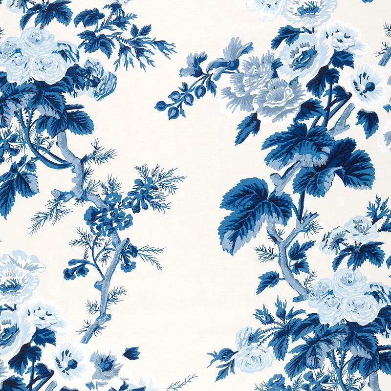 Schumacher Fabric PYNE HOLLYHOCK PRINT INDIGO