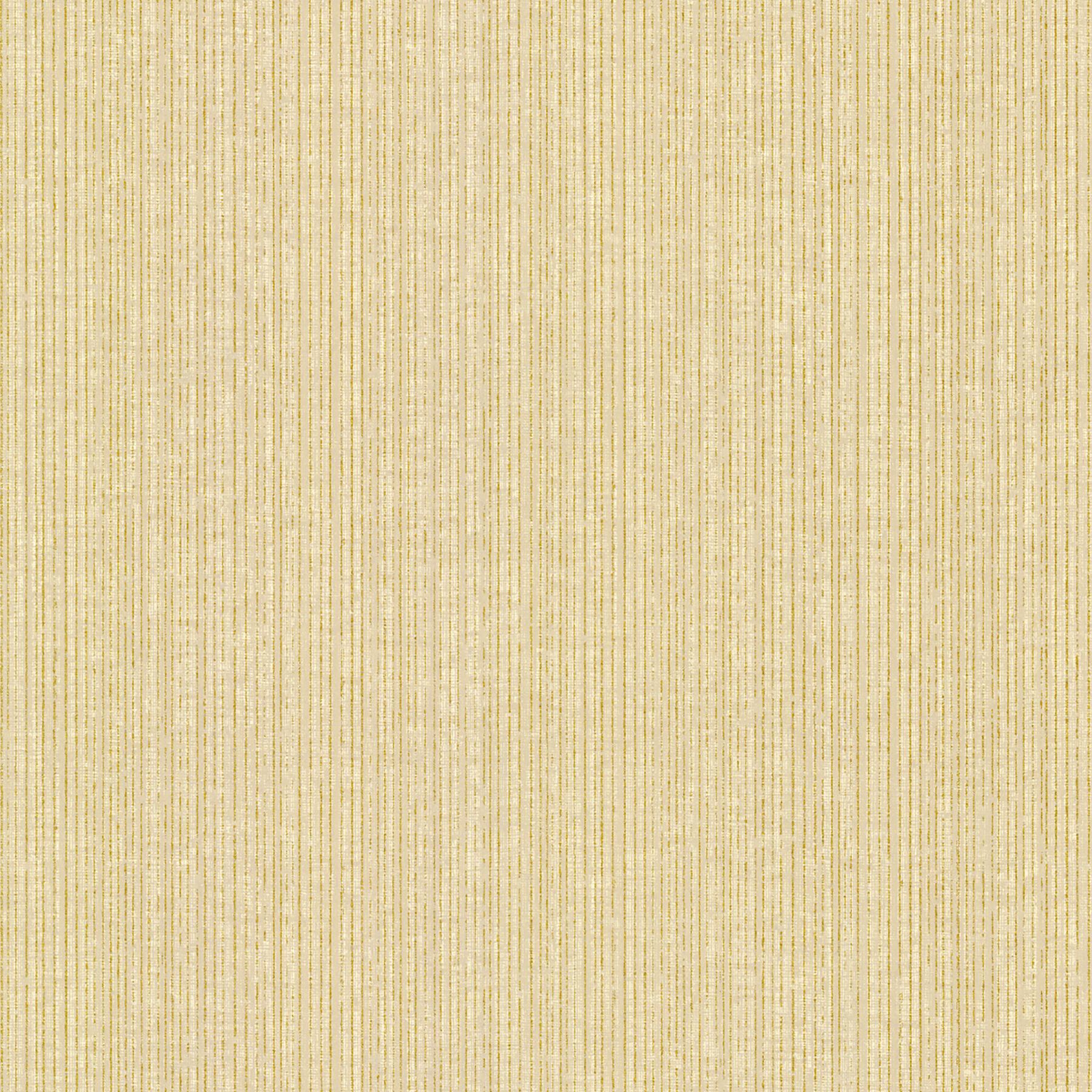 | A warm stripe texture in a soft beige hue is the perfect neutral accompaniment to decor. A dazzling thread of gold works its way down this sophisticated wallcovering for a hip and tailored finish. Page: 63 Match: Random Single Double Roll Width (in): 20.5 Single Double Roll Length (ft): 16.5 Unpasted Strippable |