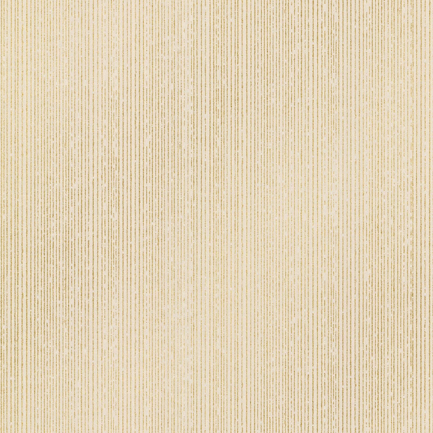 Threads of gold flitter atop this taupe wallcovering, a dazzling stripe texture bringing a magical enchantment to walls.