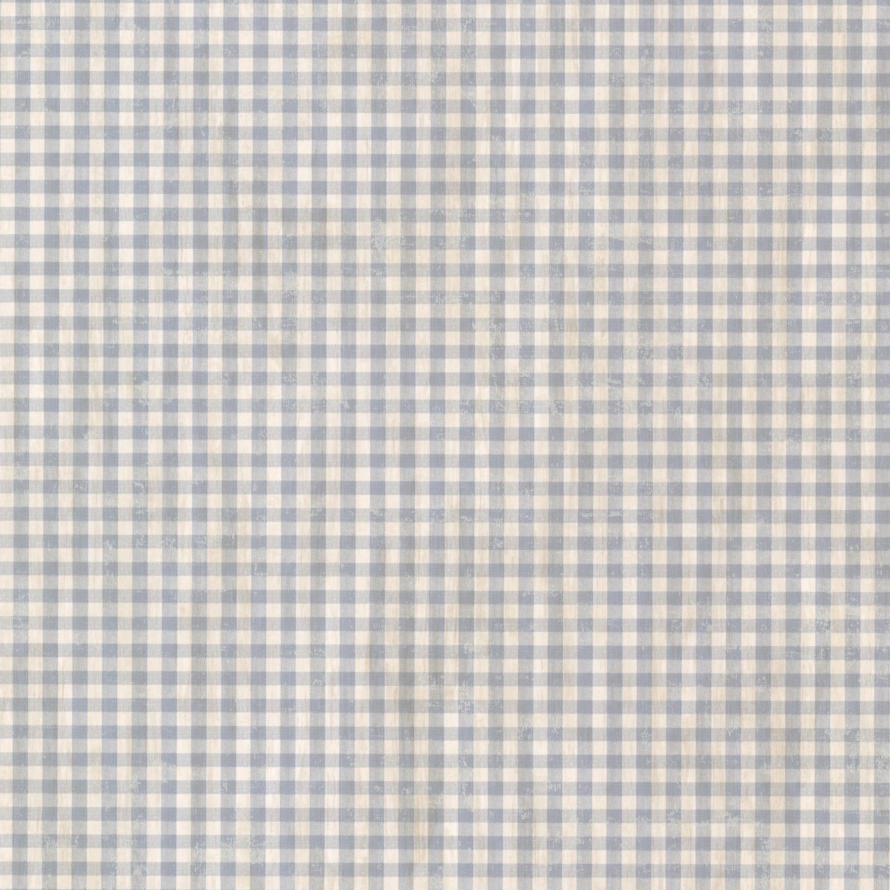 Featuring a weathered gingham print that possesses of long days spent in the sun and rolling hills of freedom this fabric inspired wallcovering presents a country feeling to decor that washes walls in a cooling color scheme of blue and white.