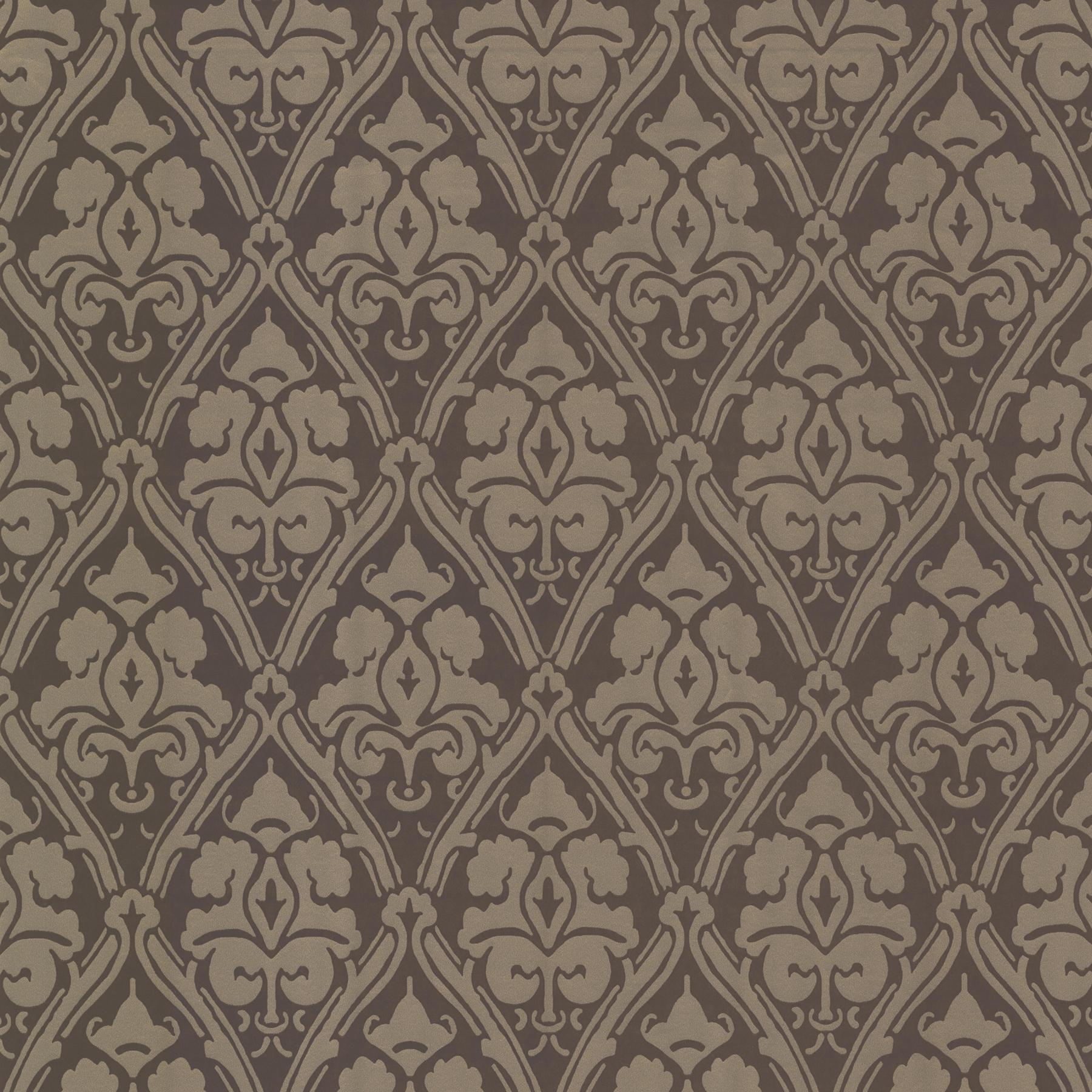 | So rich and luxe this designer damask wallcovering makes a golden trellis over a delicious chocolate background. Page: 50 Match: Straight Single Double Roll Width (in): 20.5 Single Double Roll Length (ft): 16.5 Unpasted Strippable |