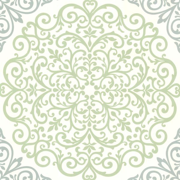 | A picture of global elegance surrounds this opulent style wallcovering of a gorgeous damask print flourishing a hip medallion design. A mint blue and cream color scheme make it a perfectly serene decor piece. Page: 98 Match: Straight Single Roll Width (in): 20.5 Single Roll Length (ft): 16.5 Unpasted Strippable |
