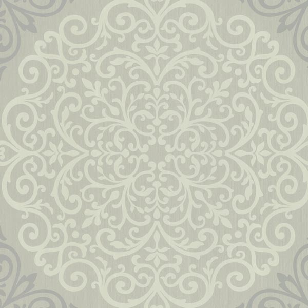 | With a backdrop that looks to have been spun from silk this damask wall paper is both sophisticated and cultured with an intricate medallion design that shimmers against a hip silver radiance. Page: 102 Match: Straight Single Roll Width (in): 20.5 Single Roll Length (ft): 16.5 Unpasted Strippable |
