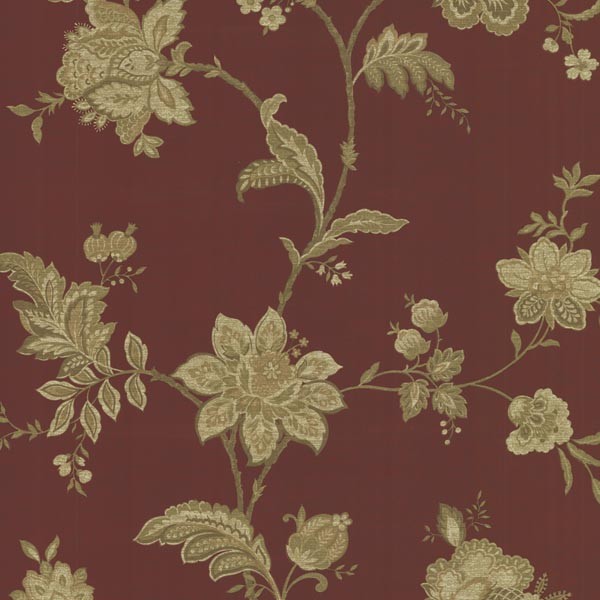 | A global tapestry of botanical enchantment where a Glistening Jacobean trail flourishes atop a cherry infused backdrop. Delicately etched in gold this cultured wall paper has a classy and sophisticated air. Page: 122 Match: Drop Single Roll Width (in): 27 Single Roll Length (ft): 13.5 Unpasted Strippable |