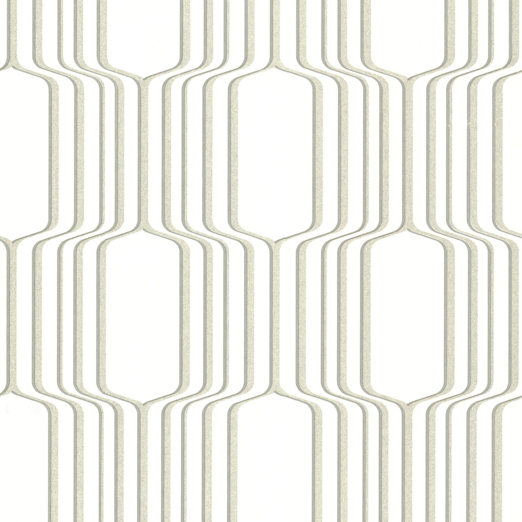 A very sophisticated modern wallcovering in white and silver. With clean lines a hip geometric print and a razzle-dazzle of glitter ink this design also has a cultured charisma.