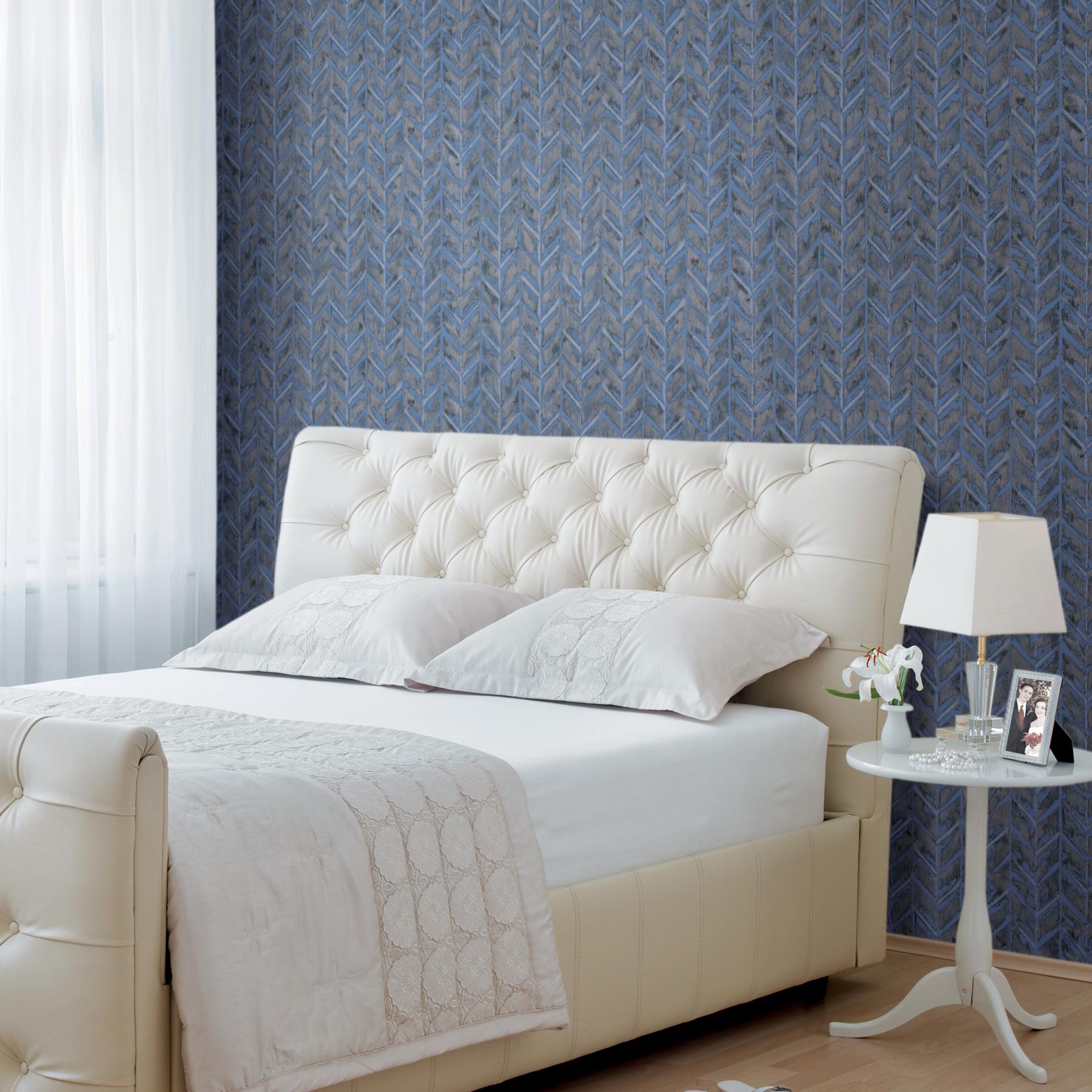 | In a lovely jewel toned blue this abstract wallcovering design adds a herringbone design to walls welcoming a perfect global-hip vibe to any room in your home. Page: 66 Match: Drop Single Roll Width (in): 27 Single Roll Length (ft): 13.5 Unpasted Strippable |