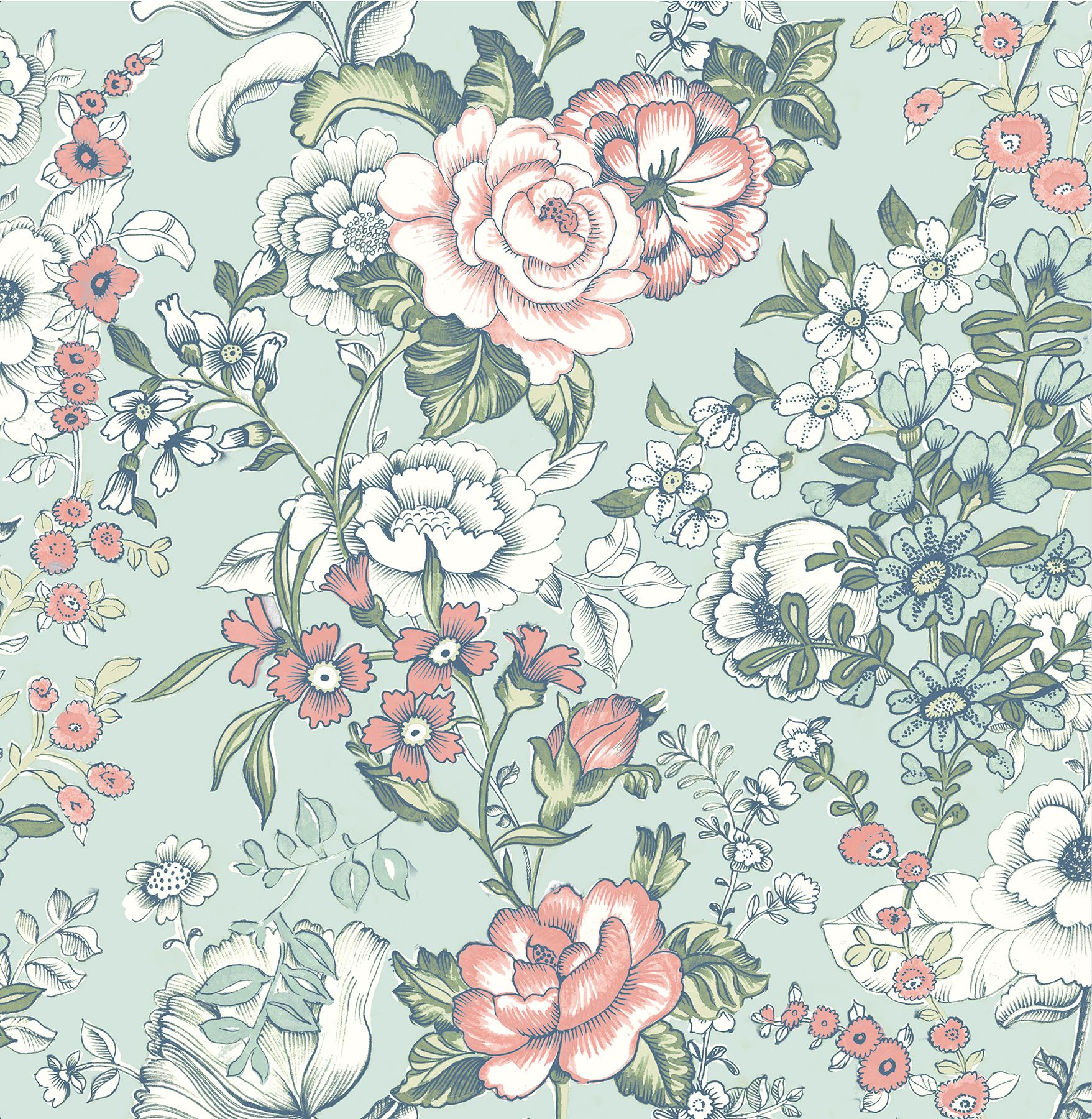 Brewster Wallcovering Ainsley Aqua Boho Floral