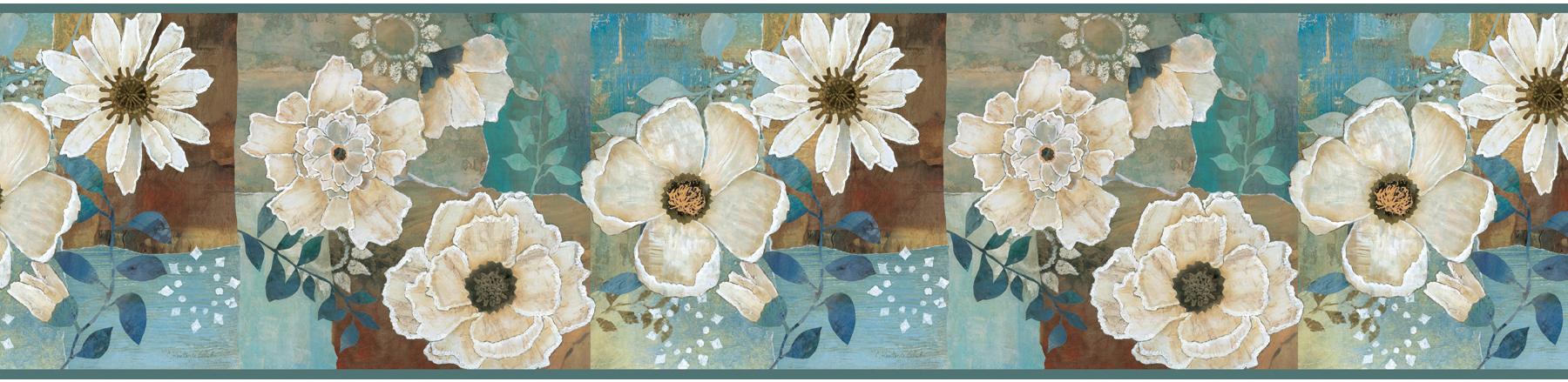 | new pops of gardenia scatter across a room on this delightful blue wallcovering border. With an exotic block design and colorful adorning leaves this wonderful print exudes countryside charm. Page: 70 Single Double Roll Width (in): 6 Single Double Roll Length (ft): 15 Prepasted Strippable |