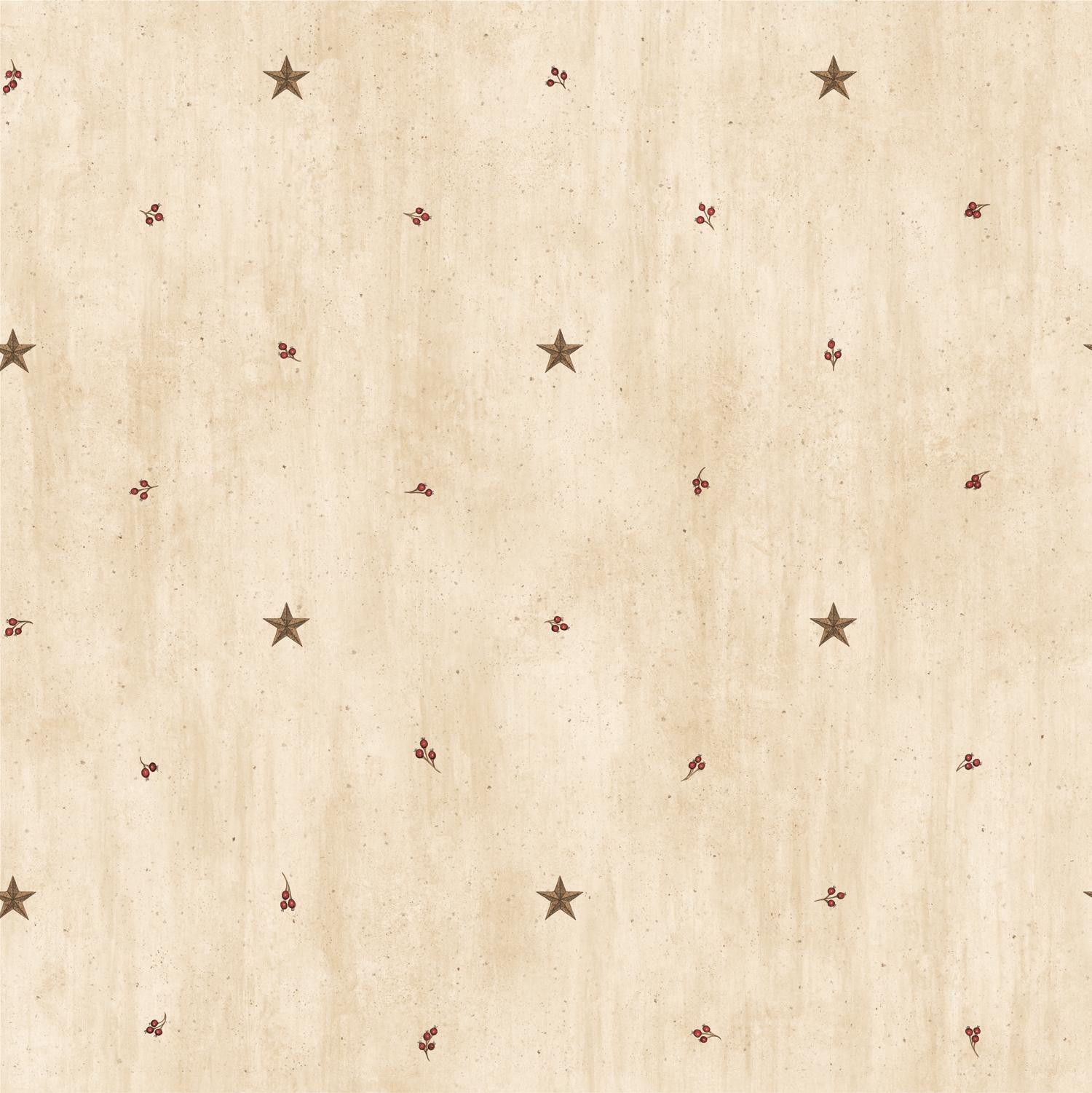 | Barn stars and delicate sprigs truly breath and open up the room on your walls with this rustic wallcovering. Page: 30 Match: Drop Single Double Roll Width (in): 20.5 Single Double Roll Length (ft): 16.5 Prepasted Strippable |