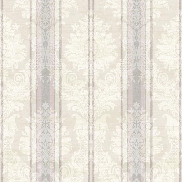 | With the allure of a moonlight dance atop a gleaming bed of water this lovely wallcovering in soft shades of lavender and grey invites an sophisticated intrigue to walls finished in a dazzling pearlescent luster. A trendy damask donned in a sophisticated multi-strip Match: Straight Single Roll Width (in): 20.5 Single Roll Length (ft): 16.5 Unpasted Strippable |