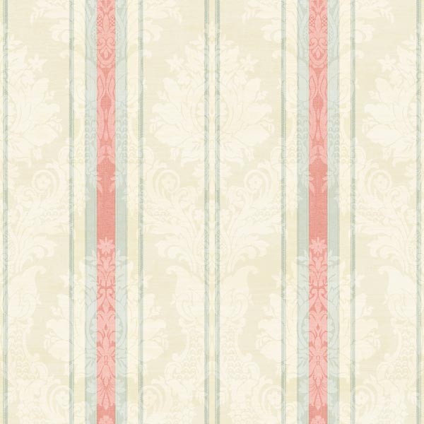 | make your own cottage style retreat with an sophisticated wall paper design that replicates the look of a fine home decor fabric. A multi-stripe design donned in blues pinks and greys presents a trendy damask to walls that is finished in a gorgeous champagne sh Match: Straight Single Roll Width (in): 20.5 Single Roll Length (ft): 16.5 Unpasted Strippable |