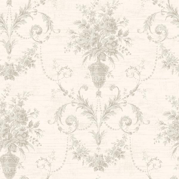 | As if designed for a fine English cottage this bluscious toned wallcovering styles a majestic damask design on walls decorated in a blend of sophisticated scrolls and flowering urns. Match: Straight Single Roll Width (in): 20.5 Single Roll Length (ft): 16.5 Unpasted Strippable Traditional Flower Wallpaper |