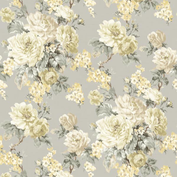 With the mesmerizing allure of an ikat fabric this grey and beige wallcovering weaves an intricate botanical trail on walls that radiates atop a gleaming silver backdrop.