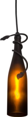 | This unique and handsome Meyda Wine Bottle Pendantwill enhance the atmosphere in a restaurant, club orhome with a distinctive style and gorgeous ambientlight. Place the pendant in multiples across a bar,island, counter and other areas for a striking effect.The wine bottle is accented with a graceful metal vineand leaf finished in Black. The fixture is handcraftedin the USA by Meyda artisans. Custom options includesizes, styles, finishes and lamping of your choice. Meyda Tiffany Pendant Bulb Type: INT Bulb Qty: 1 Bulb Wattage: 40 |