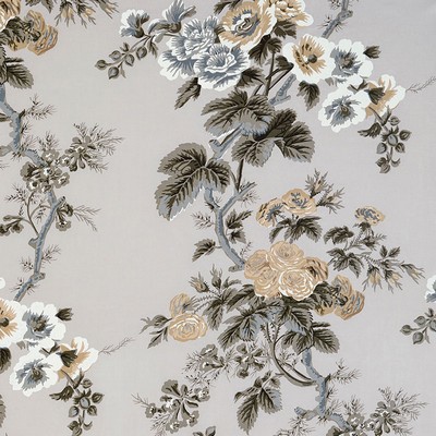 Schumacher Fabric Pyne Hollyhock Print Grisaille
