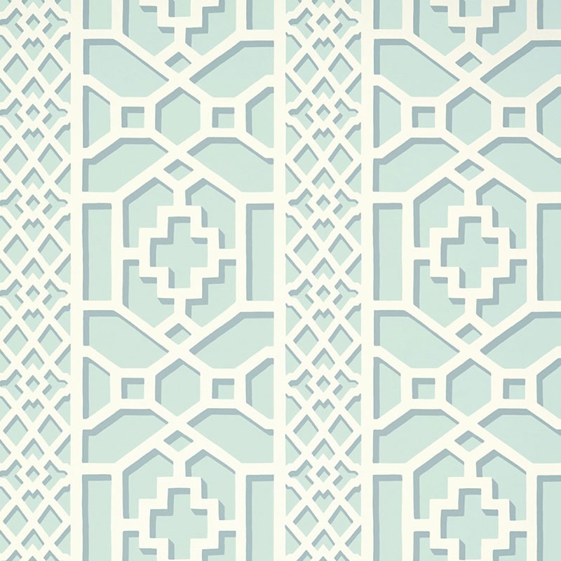 Schumacher Wallpaper Zanzibar Trellis Winter Mint