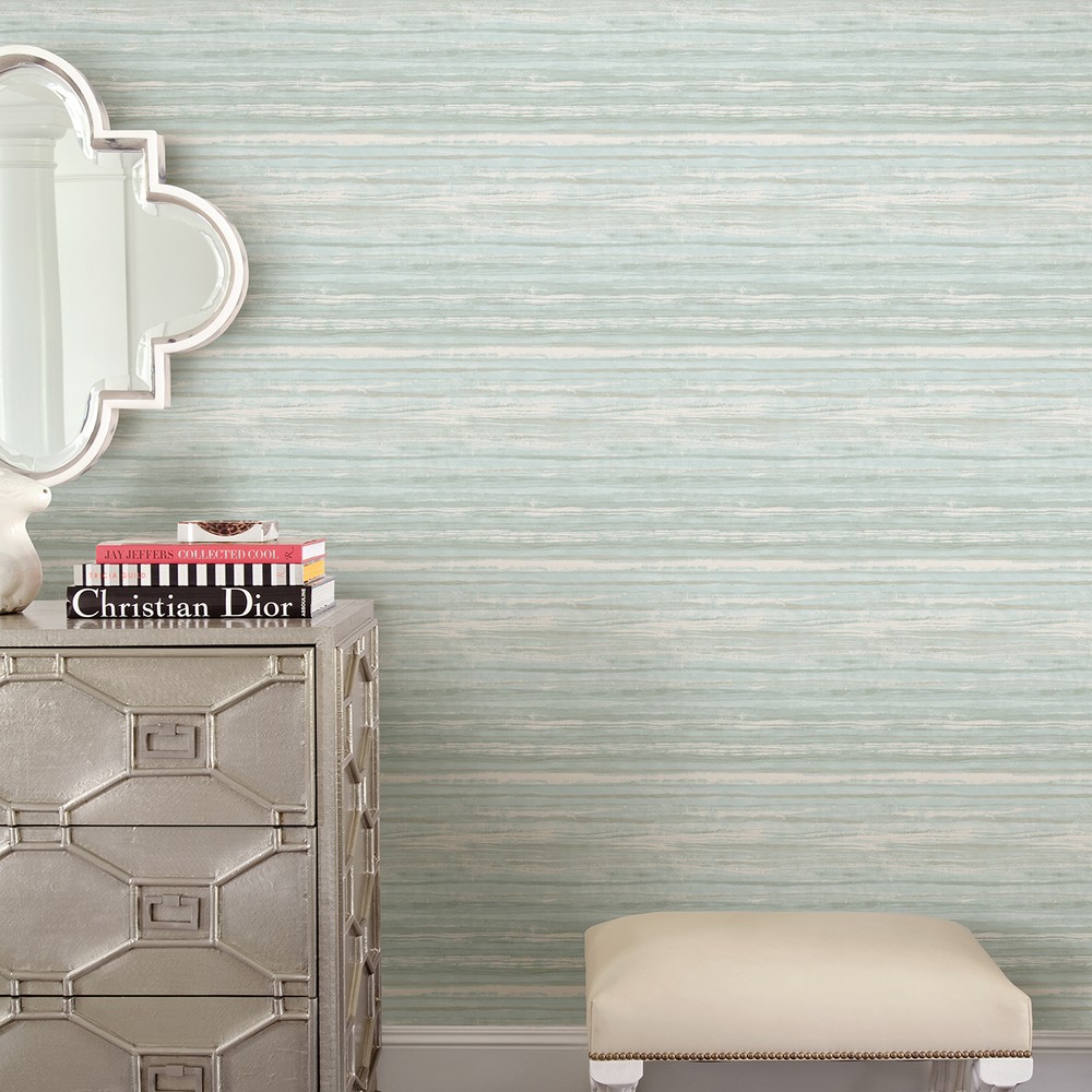 This serene stripe wallpaper is like a breath of fresh air. The artistic design features shades of aquamarine, sea green, and beige that create a beachy, modern color palette.