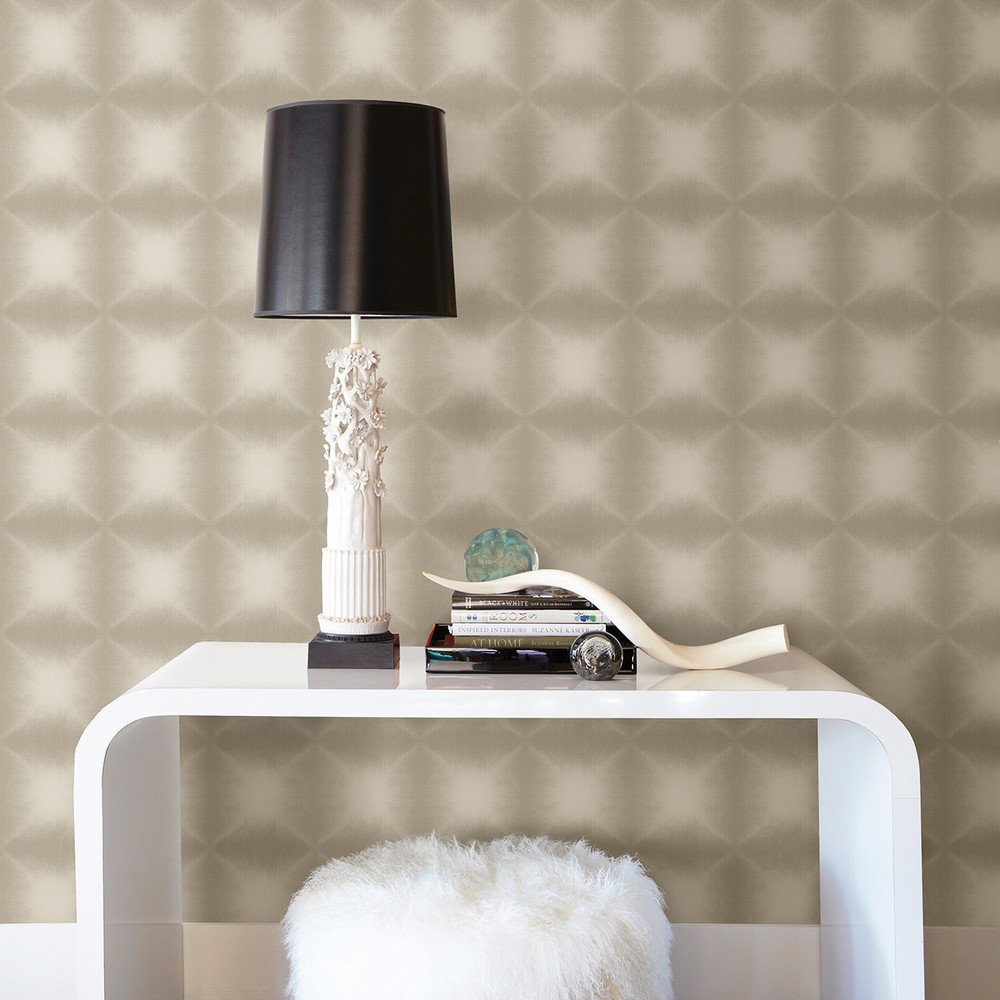 | This bronze wallpaper has a shibori style print that is subdued with the neutral color palette. A pearlescent finish adds a shimmering effect to the design. Page: 44 Match: Straight Roll Width: 20.5 Roll Length: 33 Unpasted Strippable |