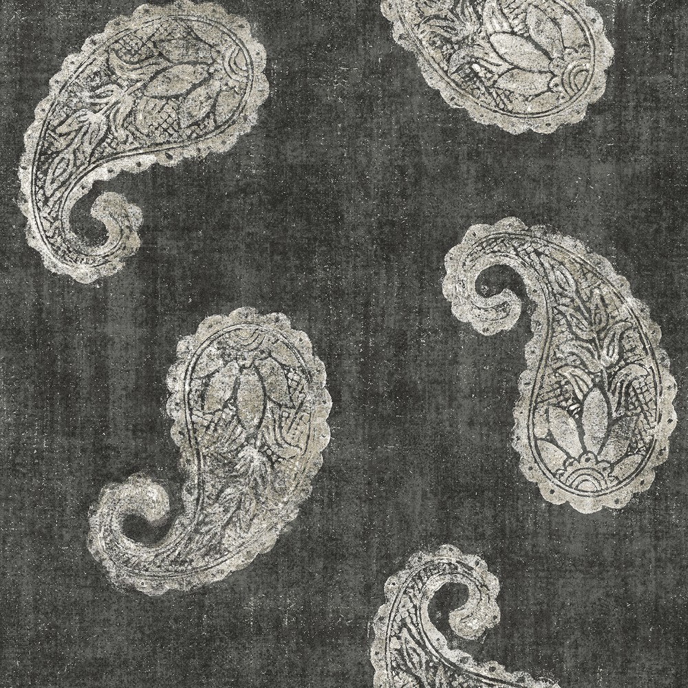 Brewster Wallcovering Kashmir Charcoal Paisley Wallpaper