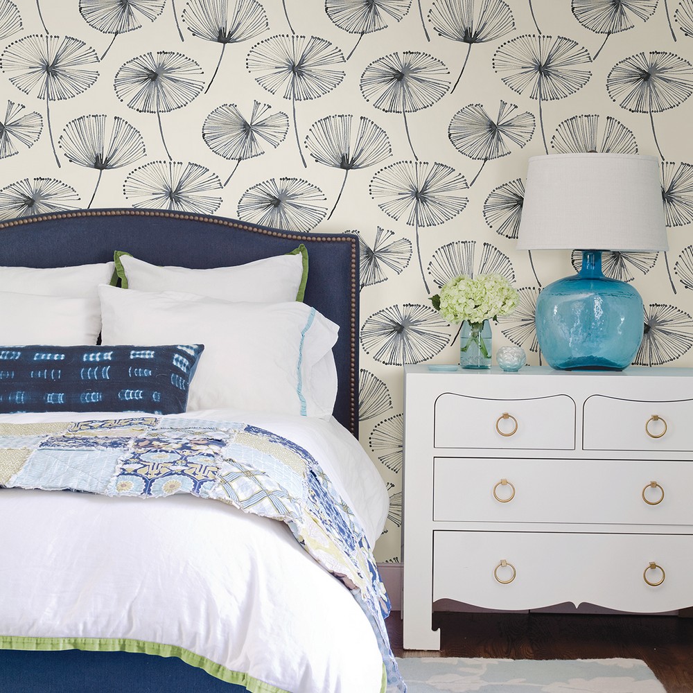 Brewster Wallcovering Paradise Navy Fronds Wallpaper Navy