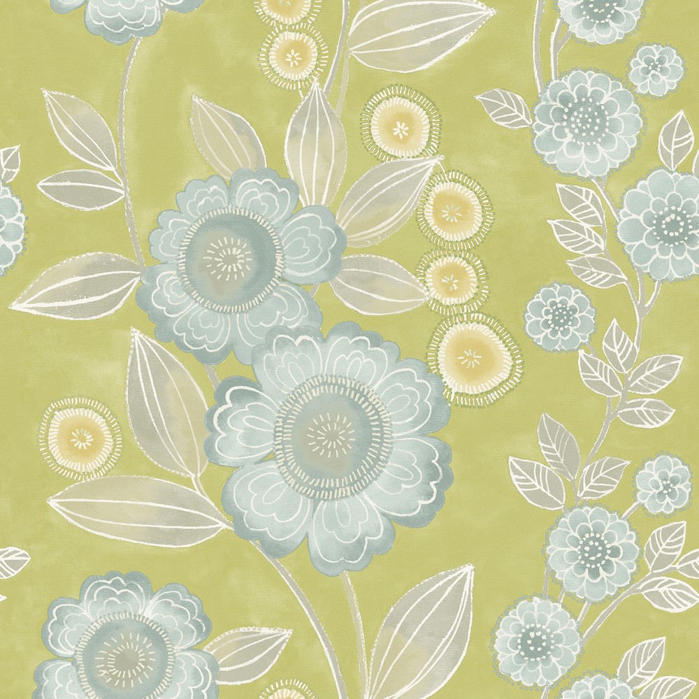 Brewster Wallcovering Bloom Green Floral Wallpaper