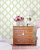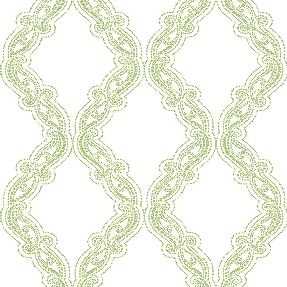 Add an intricate look to your walls while maintaining a bright space with this ogee wallpaper. The lime green and white design has a modern look with classic detailing.