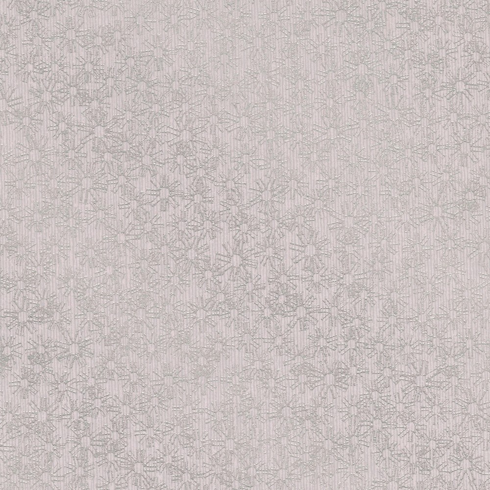 This floral wallpaper is a modern take on an old classic. Silver metallic flowers shimmer against a pinstripe tonal purple background.