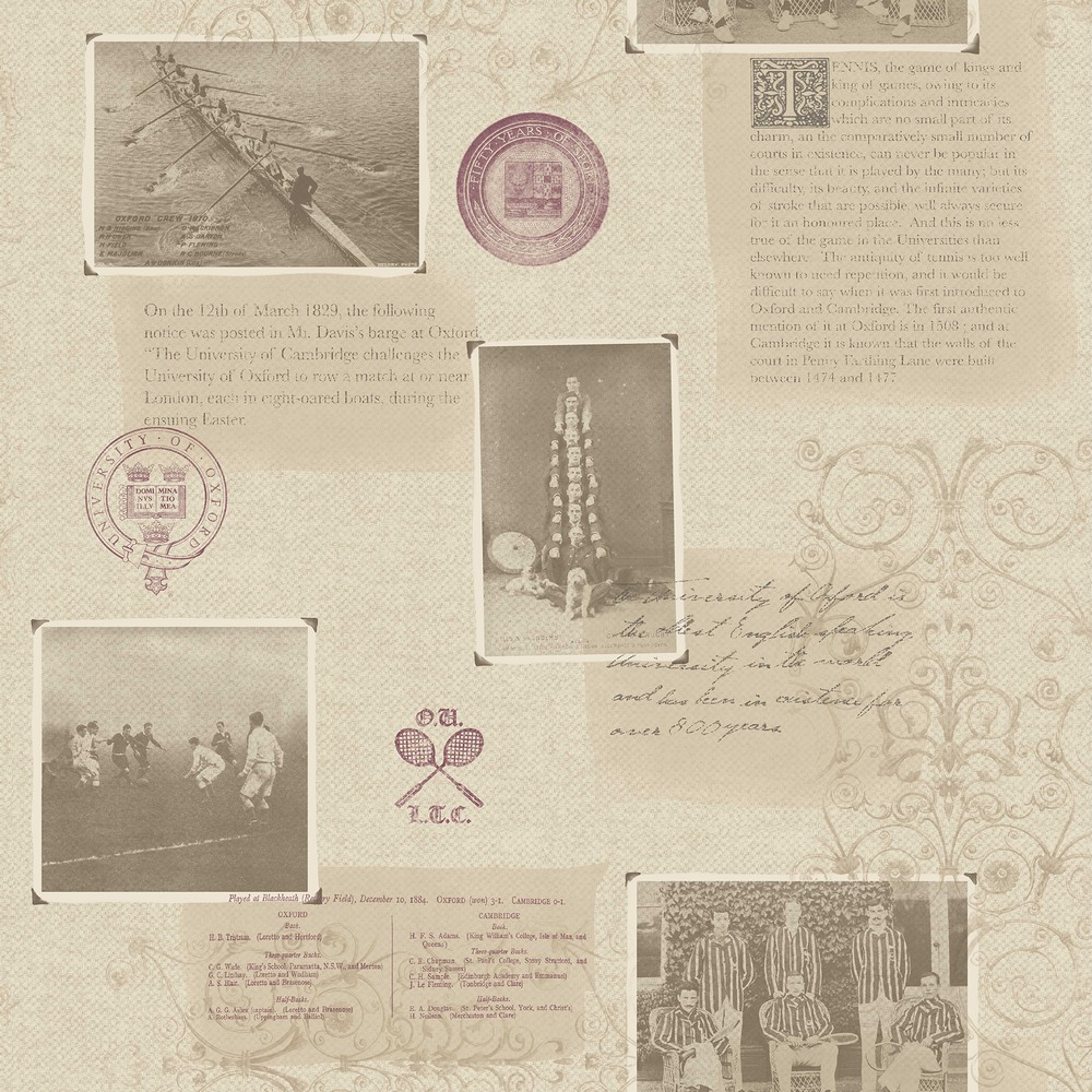 Old photographs and text clippings create a unique wallpaper telling the Oxford University story.