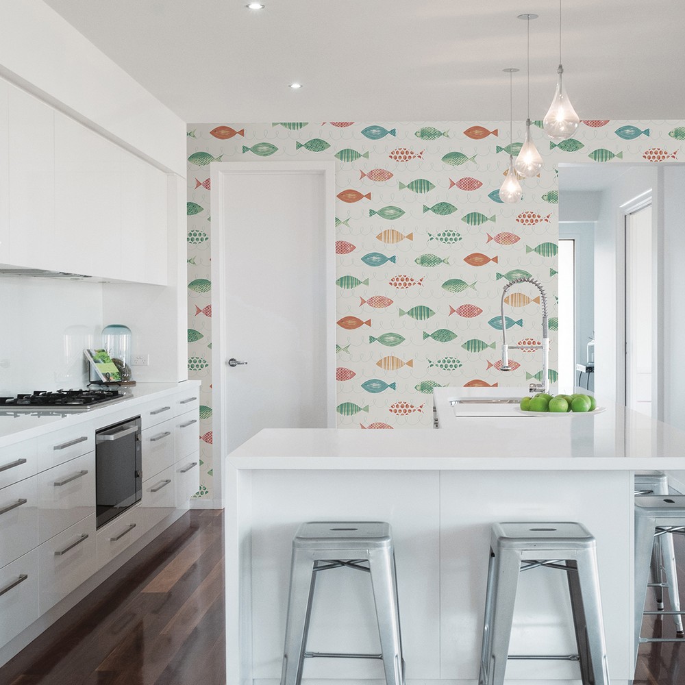 Brewster Wallcovering Key West Aqua Fish Wallpaper