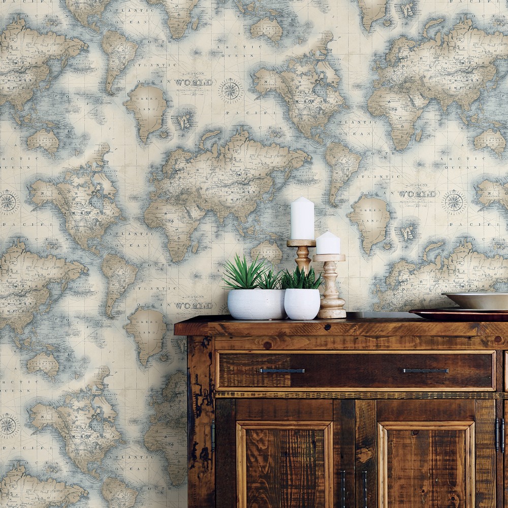 Brewster Wallcovering Mercator Cream World Map Wallpaper