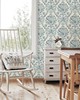 Brewster Wallcovering Shasta Teal Damask Wallpaper