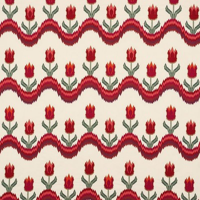 Schumacher Fabric TULIP FLAMESTITCH EMBROIDERY VERMILION
