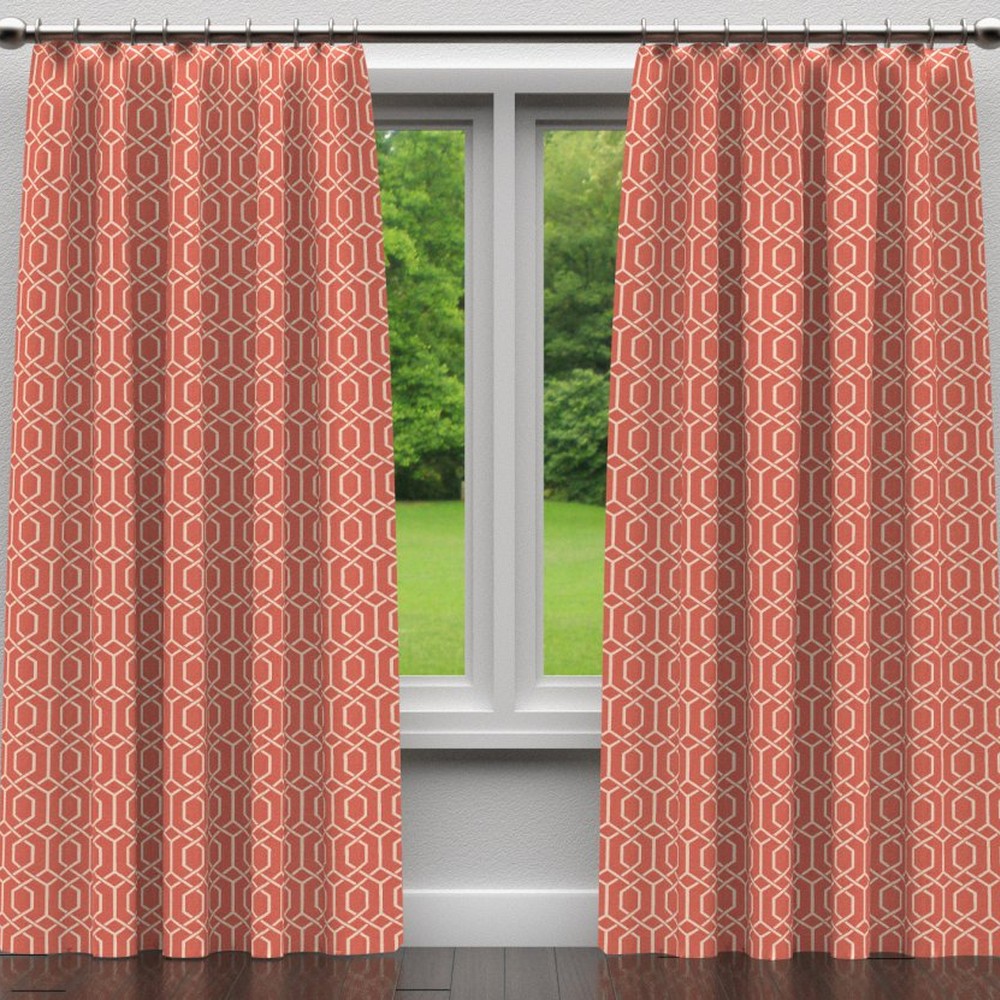 | Fabric Shades of Coral Orange Suitable for Commercial Use Hospitality Residential Bedding Contemporary Fabric Shown Not Railroaded (Up the Roll) Lattice And Fretwork Fabric |