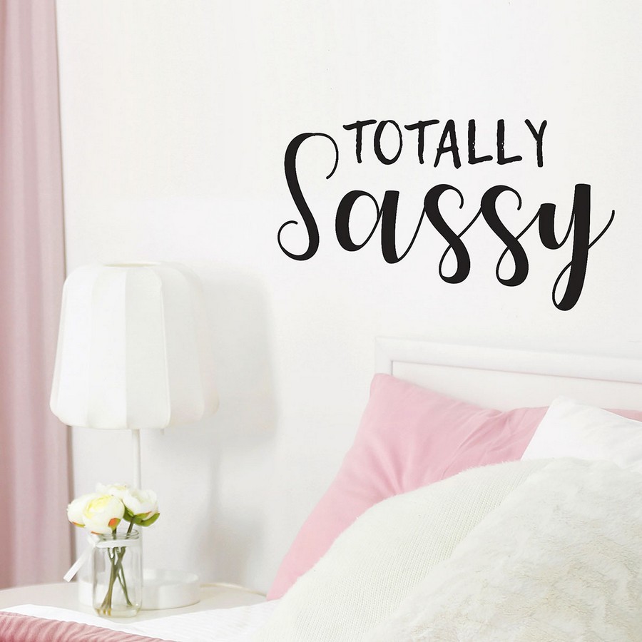 | Reading, Totally sassy, this fun wall quote celebrates everyone's inner diva. Its black cursive font and capital letters add to its eye-catching feel. Totally Sassy Wall Quote Decals contains 4 pieces on 2 sheets that measure 17.25 x 9.75 inches. Repeat: No Repeat WallPops Wall Art Kits Wall Quotes # of Pieces: 4 current Wall Phrases Wall Phrases |