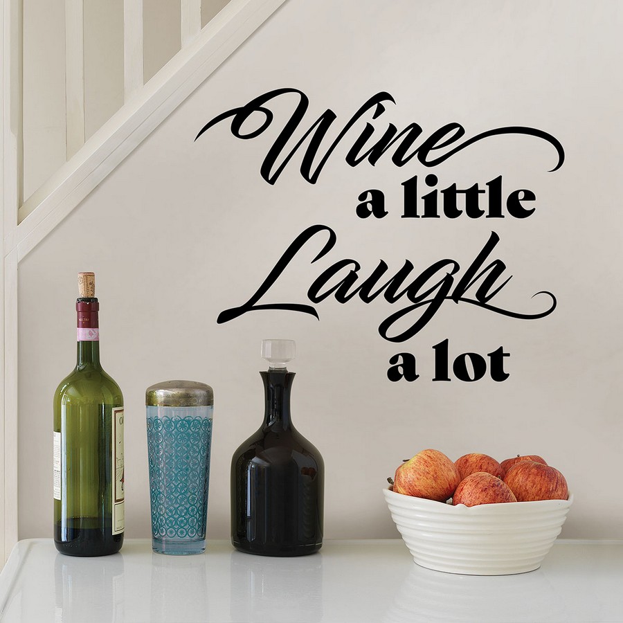 | If the only whine you like comes in a bottle, then this fun wall decal is for you! Reading, Wine a little laugh a lot, this classic quote encourages you to always find humor in pour situations. Wine a Little Laugh a lot Wall Quote Decals contains 4 pieces on 2 sheets that measure 17.25 x 9.75 inches. Repeat: No Repeat WallPops Wall Art Kits Wall Quotes # of Pieces: 4 current Wall Phrases Wall Phrases |
