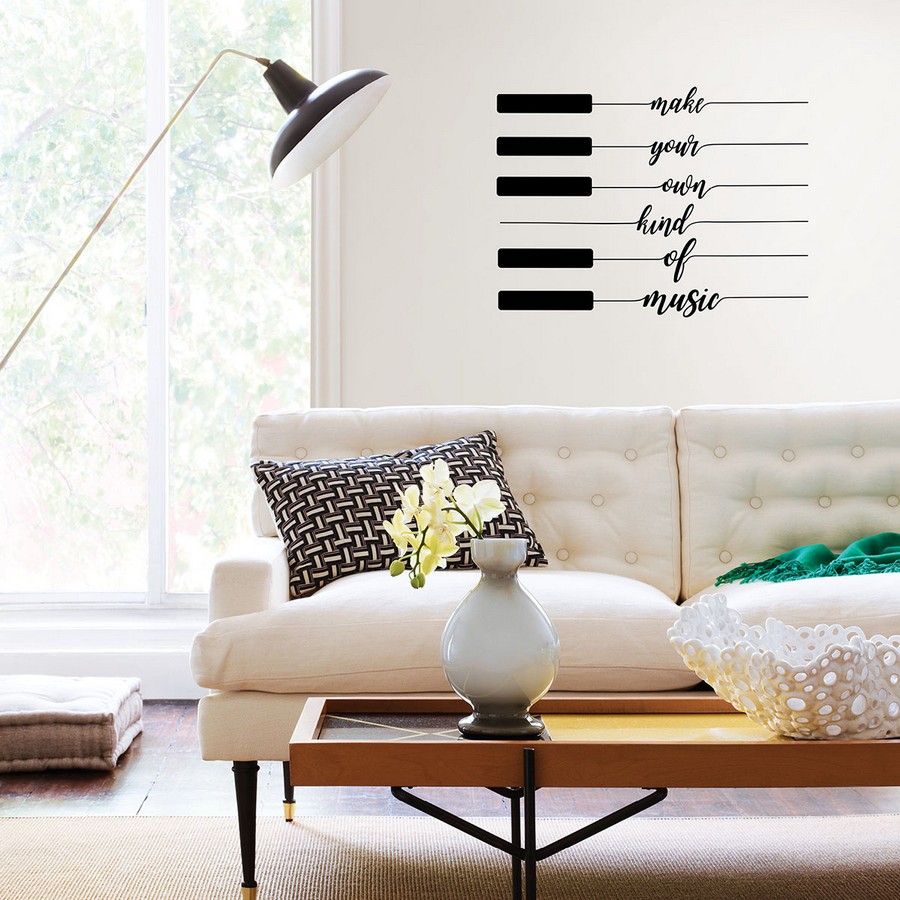 | March to the beat of your own drum. The inspirational quote, Make your own kind of music, is woven in between piano keys in this uplifting wall art kit. Own Kind of Music Wall Art Kit contains 6 pieces on 1 sheet that measures 17.5 x 24 inches. Repeat: No Repeat WallPops Wall Art Kits Wall Art Kits # of Pieces: 6 current Novelty Novelty |