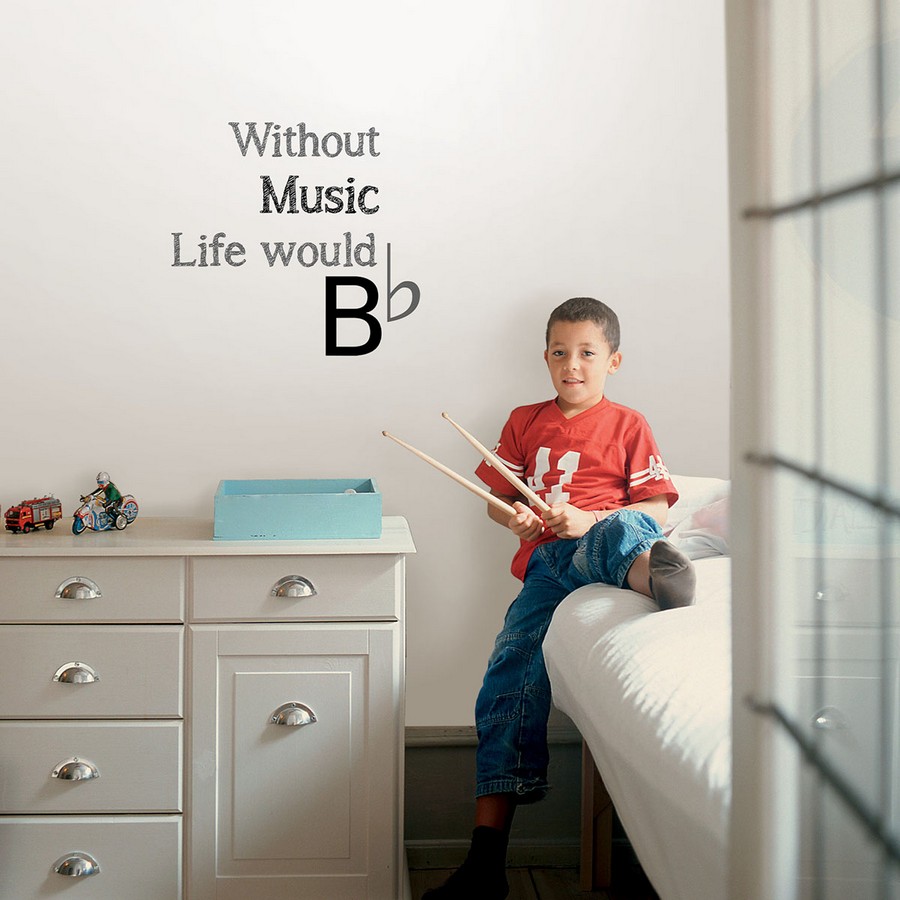 | A cheeky play on music theory, this wall quote is perfect for all artists and musicians alike. The quote, Without music life would B♭, is featured in grey and black script. Life Without Music Wall Quote Decals contains 5 pieces on 2 sheets that measure 17.25 x 9.75 inches. Repeat: No Repeat WallPops Wall Art Kits Wall Quotes # of Pieces: 5 current Novelty Novelty |