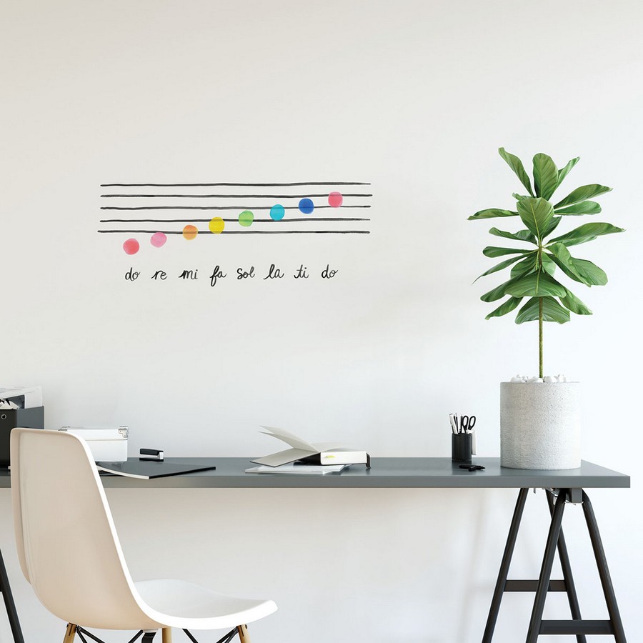 | Learning music theory just got a lot more colorful. This wall art kit features the ascending notes of the tonal scale in a rainbow of shades and, Do, Re, Me, Fa, Sol, La, Ti, Do, in a cursive script. Do Re Mi Wall Quote Decals contains 26 pieces on 2 sheets that measure 17.25 x 9.75 inches. Repeat: No Repeat WallPops Wall Art Kits Wall Quotes # of Pieces: 26 current Novelty Alphabet & Numbers |