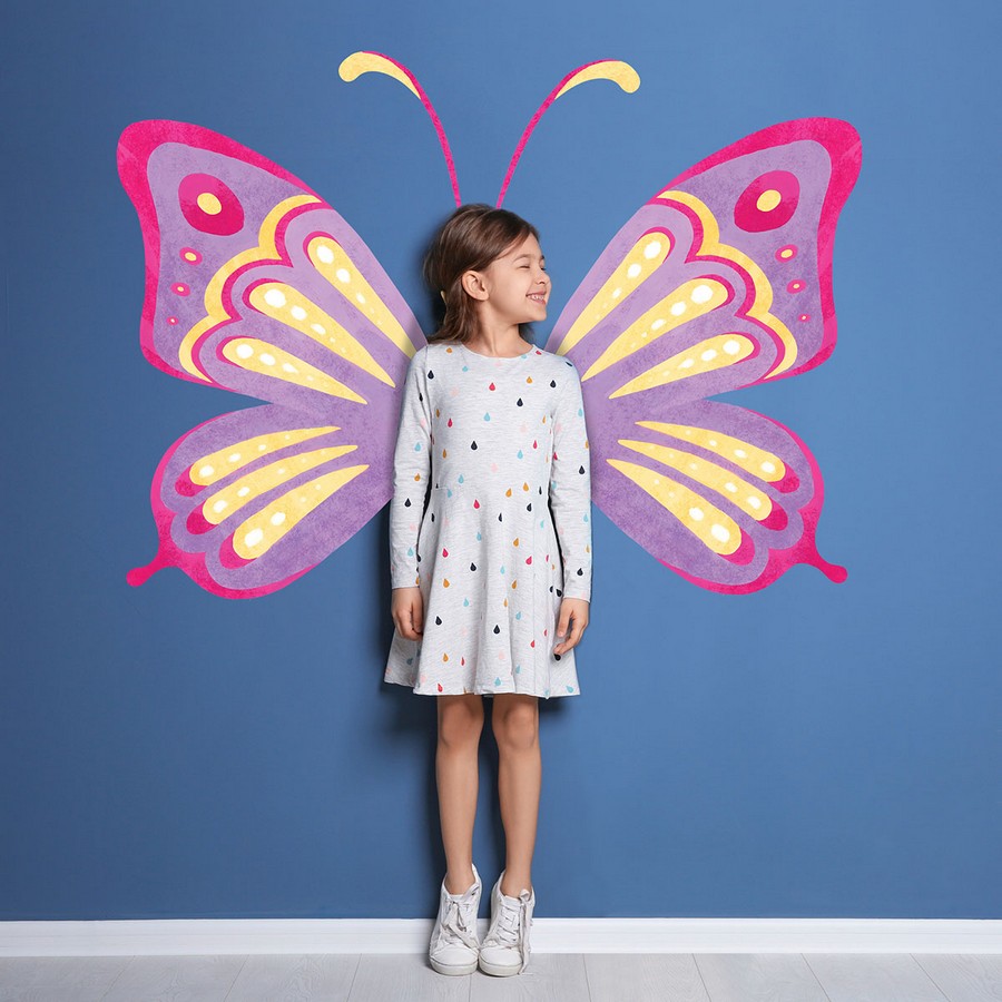 | Stand in front of these whimsical wings and transform yourself into a gorgeous butterfly! Complete with a pair of antennas, this pink, purple and yellow wall art kit will inspire children's imaginations. Fly Away with Me Wall Art Kit contains 4 pieces on 1 sheet that measures 36 x 48 inches. Repeat: No Repeat WallPops Wall Art Kits Wall Art Kits # of Pieces: 4 Kids Butterflies Animals Girls Wallpaper |