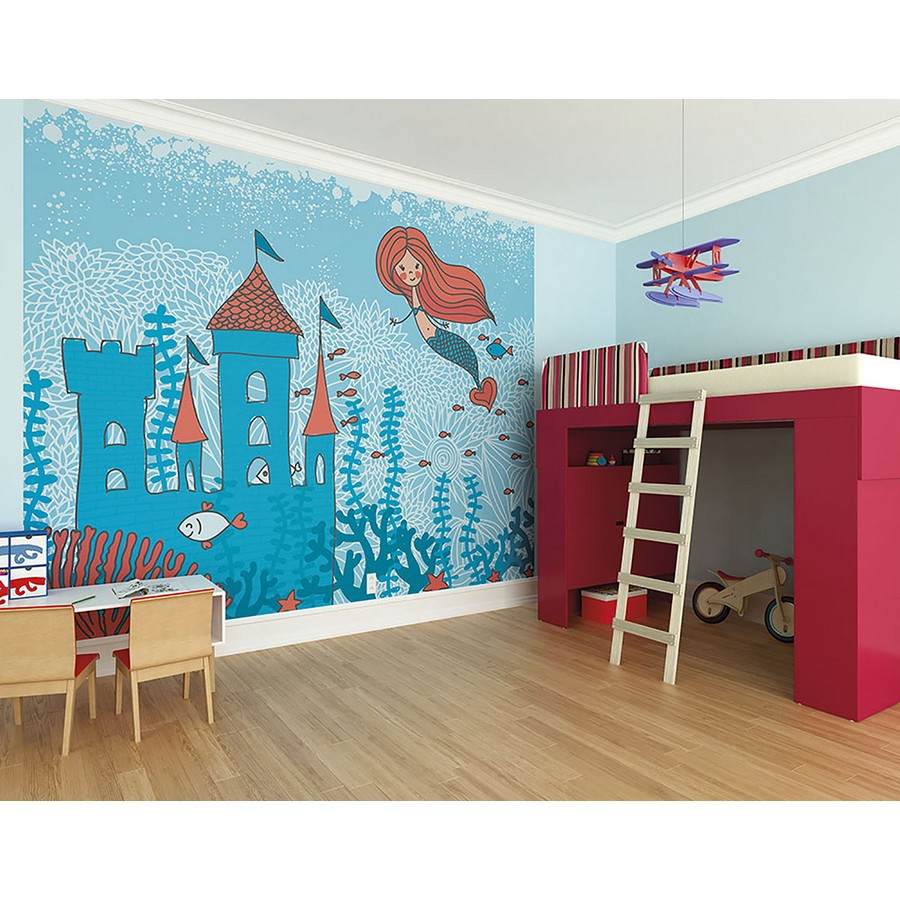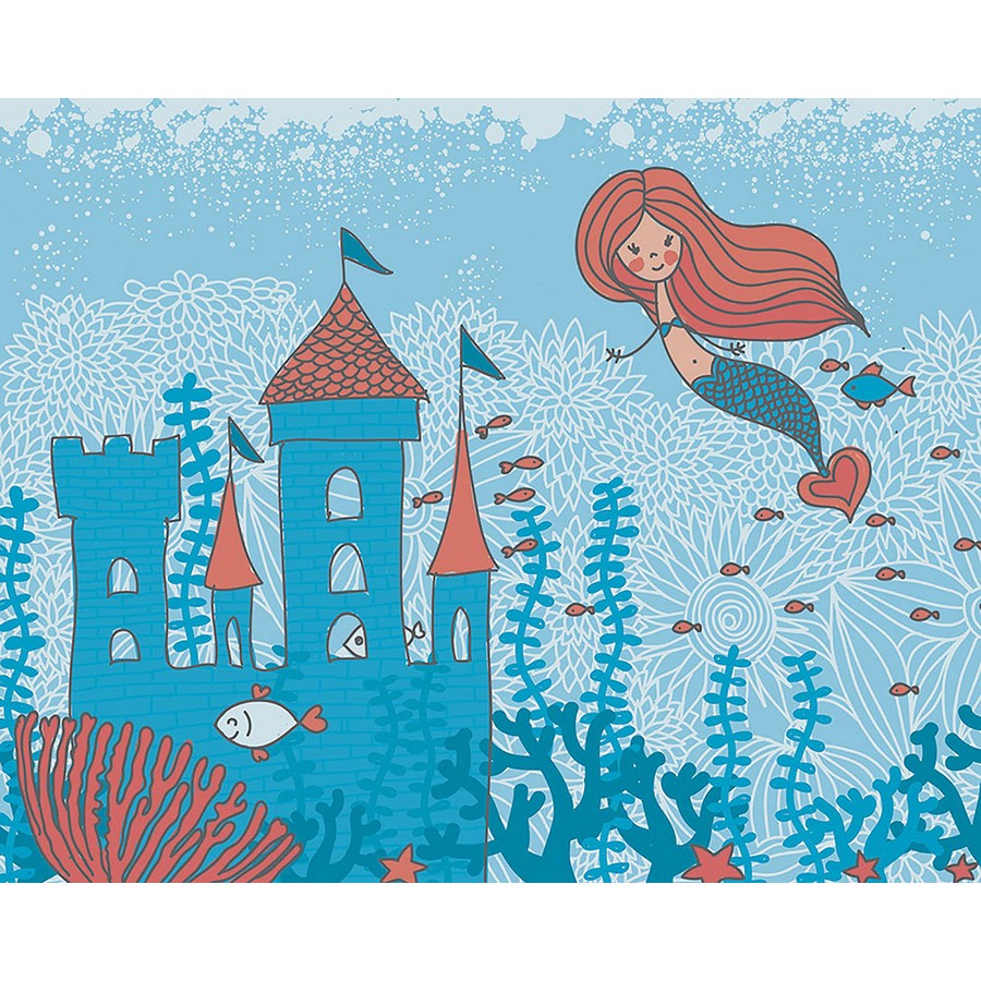 | A mermaid with flowing red hair swims toward a blue castle in this enchanting seascape. Its hand drawn style lends to the mural's charming design, while smiling fish and blue kelp complete the underwater scene. Mermaid Castle Wall Mural comes on 6 panels. Measures 9ft 10in x 7ft 10in when assembled Repeat: No Repeat ohpopsi Wall Murals Wall Murals # of Pieces: 6 Kids Novelty Ocean Wall Murals And Wall Stickers Girls Wallpaper |