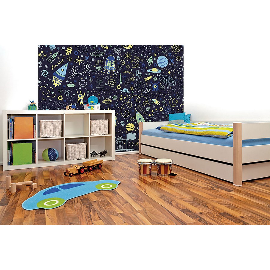 | Blast off! Aliens fly around in UFOs amongst shooting stars, rockets, and brilliant planets in this green and blue wall mural. room Doodle Wall Mural comes on 6 panels. Measures 9ft 10in x 7ft 10in when assembled Repeat: No Repeat ohpopsi Wall Murals Wall Murals # of Pieces: 6 Kids Stars Outer room Wall Murals And Wall Stickers Boys Wallpaper |