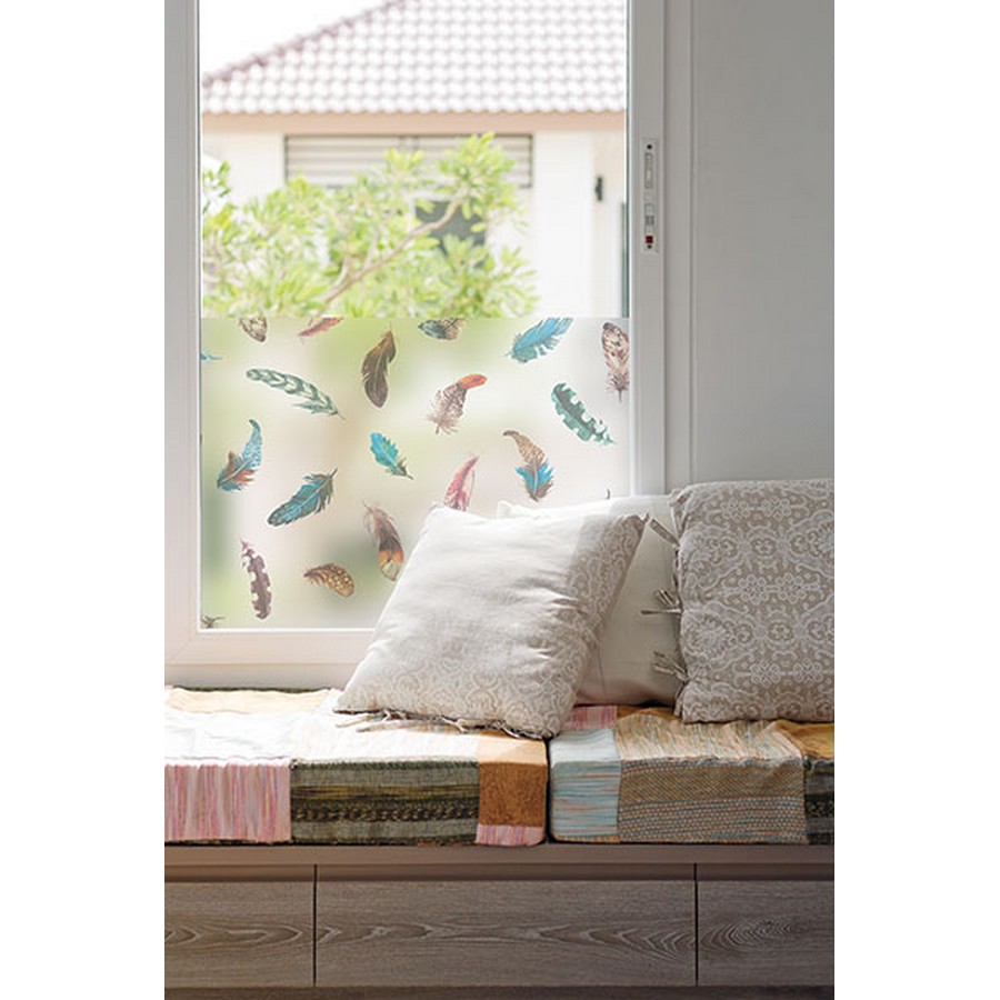 | This charming window film is perfect for adding a pop of color to rooms. Its bohemian design features multicolored free falling feathers against a pastel blue background. Feather Window Film contains 1 piece on 1 sheet that measures 59 x 17.71 inches. Repeat: No Repeat DC Fix Window Film Static Window Film # of Pieces: 1 Bohemian Birds Nature |