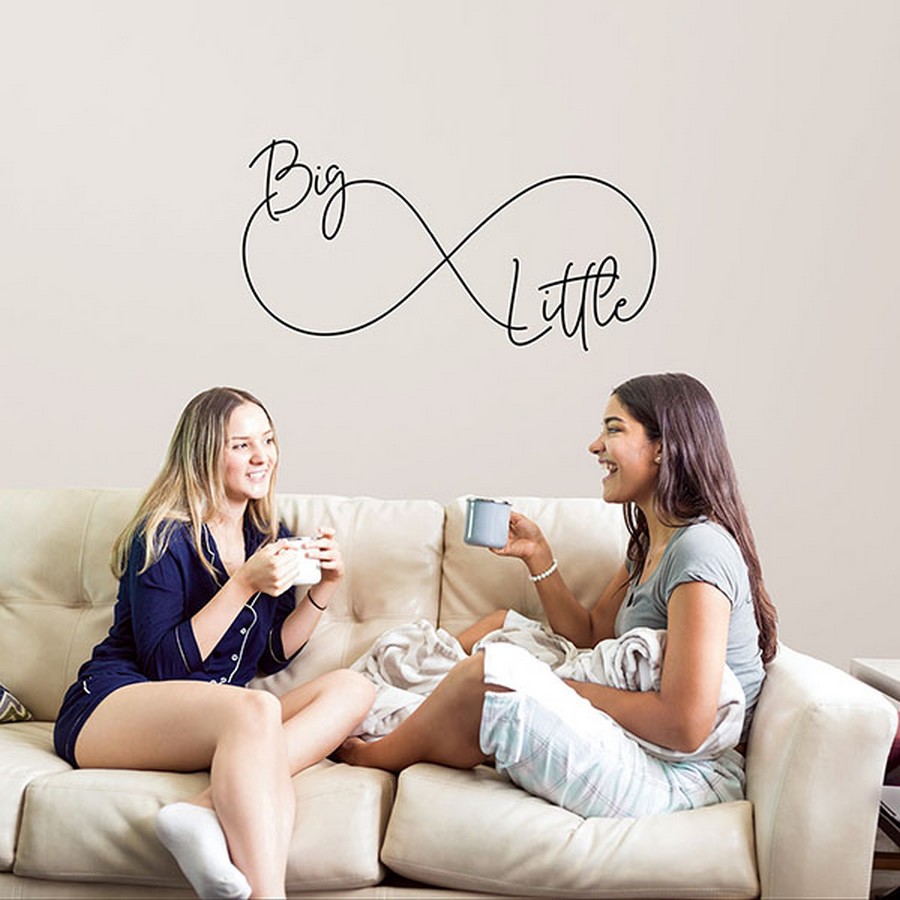 The words, Big, and, Little, are attached by an infinity symbol in this Greek life inspired wall art kit. Its minimalist design has an effortlessly hip style. Big Little Wall Quote Decals contains 5 pieces on 2 sheets that measure 17.25 x 9.75 inches.