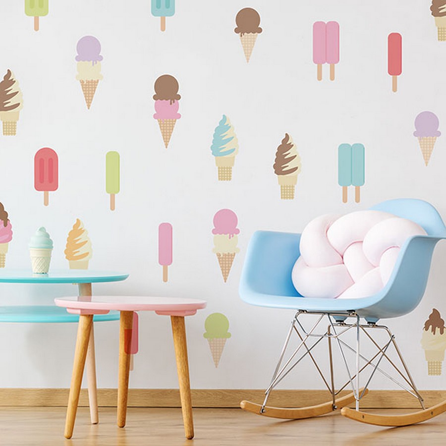 | Ice cream - you scream - we all scream for WallPops! These peppy popsicles and ice cream cones feature bright pastel colors that will instantly add fun to any room. Lickety Split Wall Art Kit contains 45 stickers on 4 sheets that measure 17.25 x 9.75 inches. This product measures 35in x 63in when assembled. Repeat: No Repeat WallPops Wall Art Kits Wall Art Kits # of Pieces: 45 Kids Novelty Food & Drink |