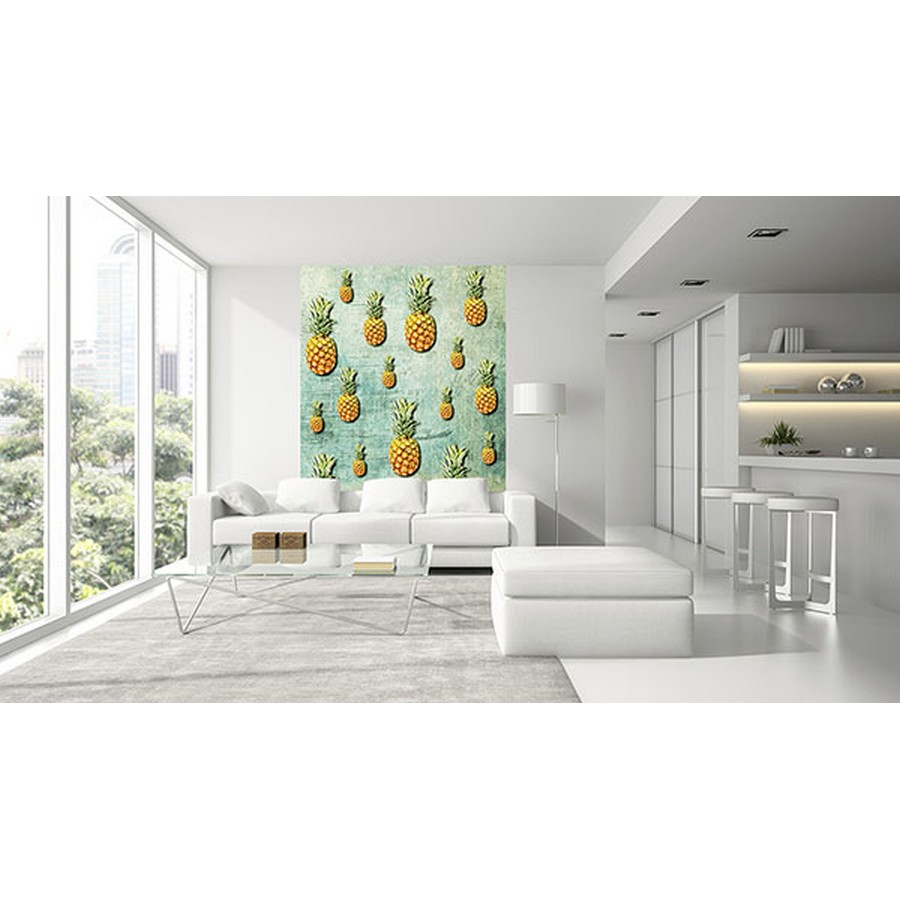| Classic yet eclectic, this pineapple print stands out on a teal gradient backdrop. Printed on non woven paper and measures 8-ft 3-in high and 6-ft wide when assembled. Tropical Pineapples Wall Mural comes on 2 panels. Paste is included. Repeat: No Repeat Ideal decor Wall Murals Wall Murals # of Pieces: 2 Tropical Fruit Fruit |