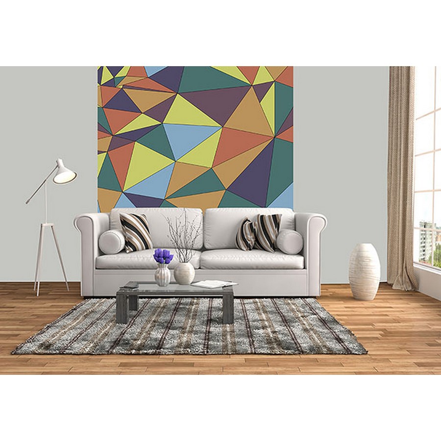 shades of lime, forest green, brick red and blue dazzle in this current geometric mural. Printed on non woven paper and measures 8-ft 3-in high and 6-ft wide when assembled. Multicolored Polygons Wall Mural comes on 2 panels. Paste is included.
