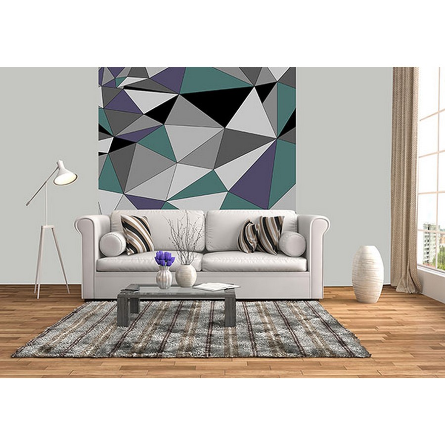 make a modern look with this grey, teal and dark purple geometric wall mural. Printed on non woven paper and measures 8-ft 3-in high and 6-ft wide when assembled. Grey Polygons Wall Mural comes on 2 panels. Paste is included.